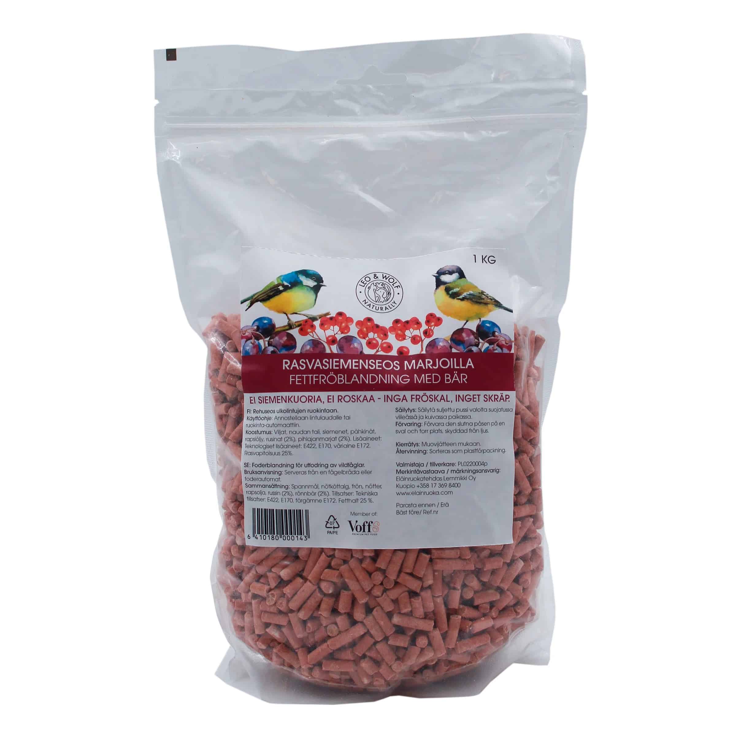 - Naturlig energikilde Med et høyt fettinnhold og næringsrike nøtter er den fete frøblandingen en pålitelig energikilde som støtter fuglenes daglige aktiviteter og generelle velvære.