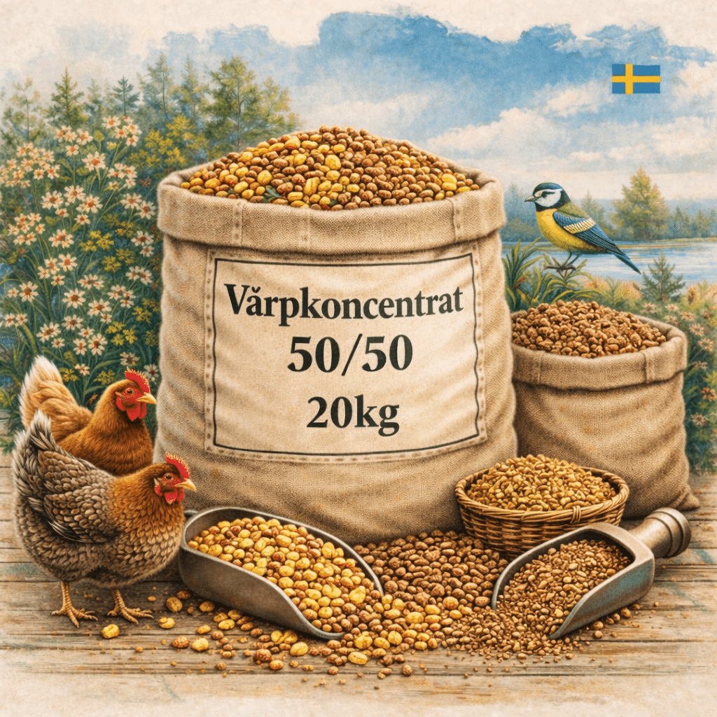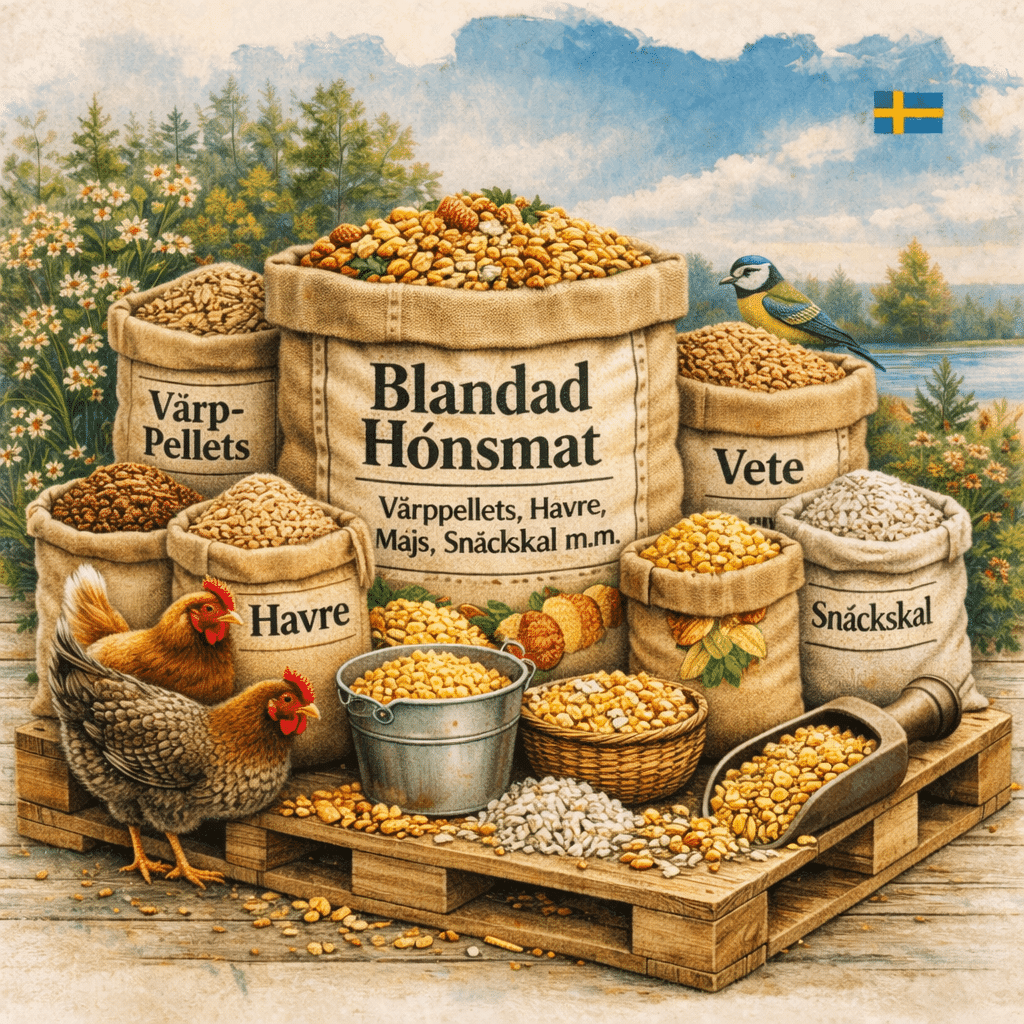 Blanda hönsfoder som du vill på en halvpall eller helpall och få 5% rabatt på hela köpet och fri frakt! Välj minst 10 produkter från listan så får du 5% rabatt och hela ordern kommer hem till dörren på en lastpall. Perfekt om man vill köpa på lite mer för egen del eller dela med grannar.
